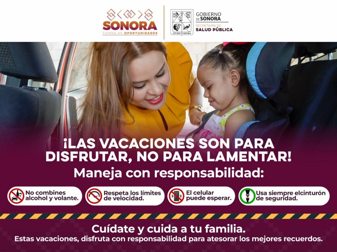 Hermosillo, Sonora.- Con el objetivo de reducir riesgos al viajar por carretera, especialmente durante los fines de semana y temporadas de alta movilidad, el Gobierno de Sonora, a través de la Secretaría de Salud (SSP), exhortó a la población a adoptar medidas de prevención que pueden salvar vidas.