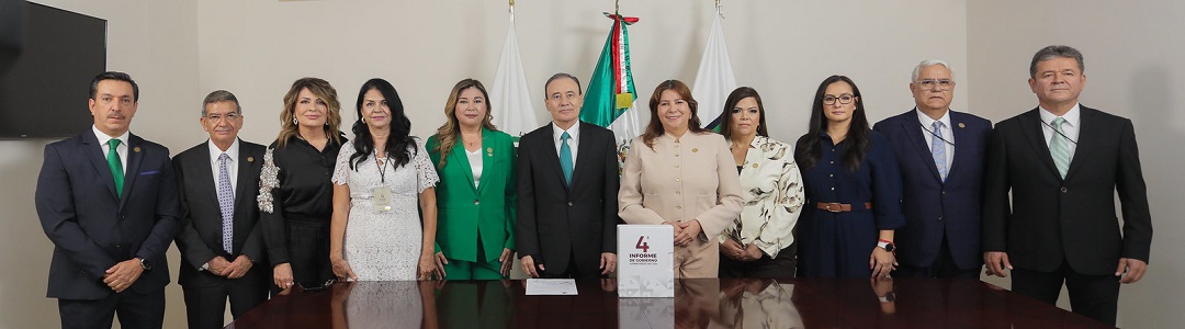 En compañía de la diputada Jazmín Guadalupe Gómez Lizárraga (PT), presidenta de la Comisión de Régimen Interno y Concertación Política (Cricp), la diputada presidenta destacó que la entrega del informe se realiza en cumplimiento de los artículos 46 y 79, fracción octava, de la Constitución local, y subrayó que el congreso lo analizará con responsabilidad y atención.